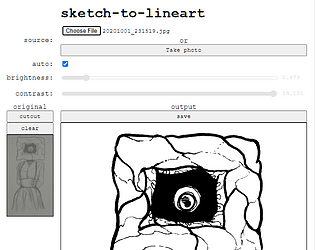 ⛢ sketch-to-lineart tool for converting sketches to transparent lineart Personal Project Simple tool to replace a common post-processing pipeline for digitizing sketches. https://seansleblanc.itch.io/sketch-to-lineart https://github.com/seleb/sketch-to-lineart https://embeds.seans.site/sketch-to-lineart/ https://downloads.seans.site/sketch-to-lineart.zip